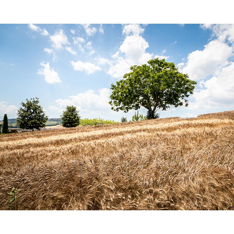 マルケ州モンテ・サンピトランジェリに広がる小麦畑。マンチーニ社はその中心に工場を構え、自社栽培のマルケ州産小麦だけを使用しパスタを製造しています。オーナーであり代々小麦生産農家のマンチーニ家が、栄養豊富で風味豊かなパスタを作るために納得のいく小麦を自ら栽培し、研究と工夫を重ね、こだわりのパスタ「マンチーニ」を誕生させました。厳選された小麦の豊かな風味と栄養が封じ込められたそのパスタは多くの人を魅了し、世界中の数多くの星付きレストランでも愛用されています。イタリア本国では三ツ星レストランの内、5店舗が使用しています(※2022年4月現在)