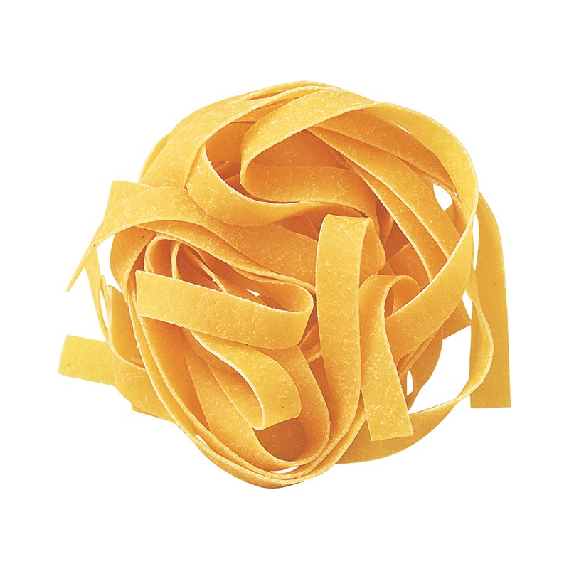 幅広のきしめん状ロングパスタ。ボロネーゼなど肉入りのソースにぴったりです。パスタ生地に卵を使用しています。