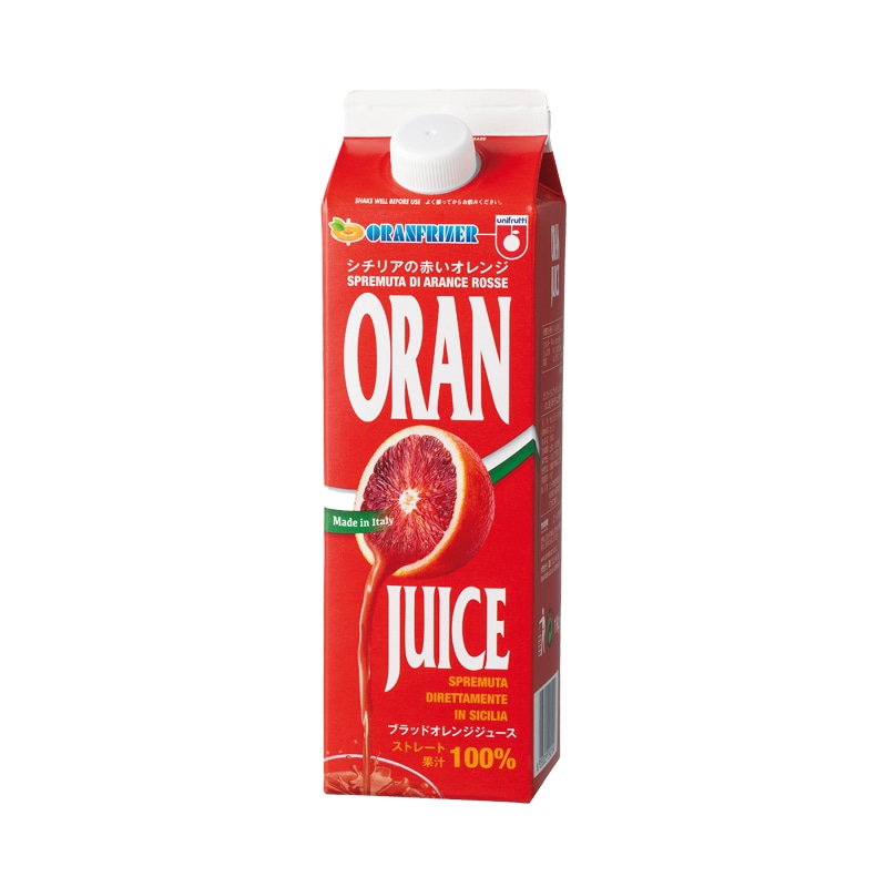 シチリア島特産の赤いオレンジを搾ったストレート果汁100%のジュース
