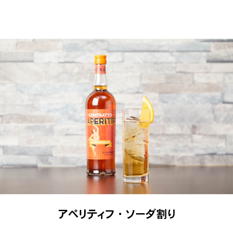 Aperitif1935年から伝わるレシピを基に造られるアペリティフ。オレンジピールやレモンピール、リコリス(甘草)など28種類のハーブ・スパイスを低温でアルコールに漬け込み、じっくりと風味を引き出しました。鮮やかなオレンジ色は、オレンジピールを使った天然の色です。ソーダやスパークリングワイン、ジュースで割って食前酒に。また、さまざまなカクテルにもご活用いただけます。