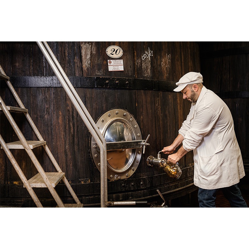 D.O.P.(保護指定原産地表示)認定されているバルサミコ酢のなかでも、"Extra vecchio"は熟成期間が25年以上のものにのみ許される表示です。熟成は木樽の中で行われ、その樽は1年おきに移し替えられます。使用される木樽は楢、栗、桑、桜、ネズなどで出来ており、25年以上繰り返し樽を移し替える過程で、それぞれの木樽が持つ特徴がバルサミコ酢を香り高く、複雑かつ調和のとれた濃厚な味わいに仕上げます。