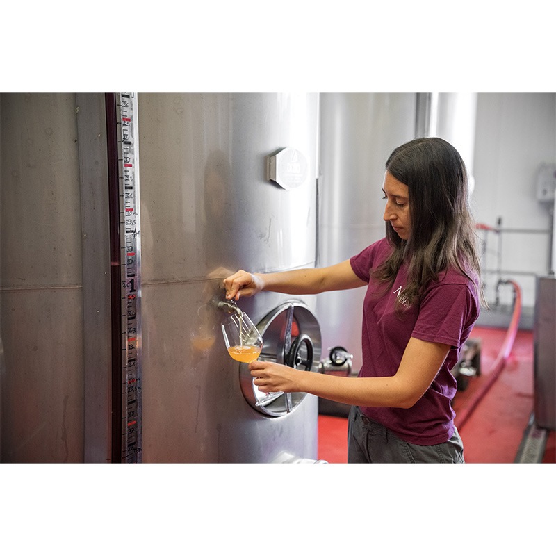 輝きのあるオレンジ色、スターアニスやジュニパーベリー、フルーツの砂糖漬け、はちみつの香りが広がります。フレッシュでありながら、深みのある味わい。さまざまな料理とも合わやすい、カジュアルなオレンジワインです。