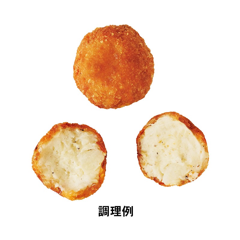 揚げるだけ、簡単調理の一口サイズのコロッケです。ヴェネツィアなどでよく食される、塩漬けの干ダラ「バッカラ」をイメージして仕込んだタラと、じゃがいもを混ぜ合わせ、ブラックペッパーをきかせました。