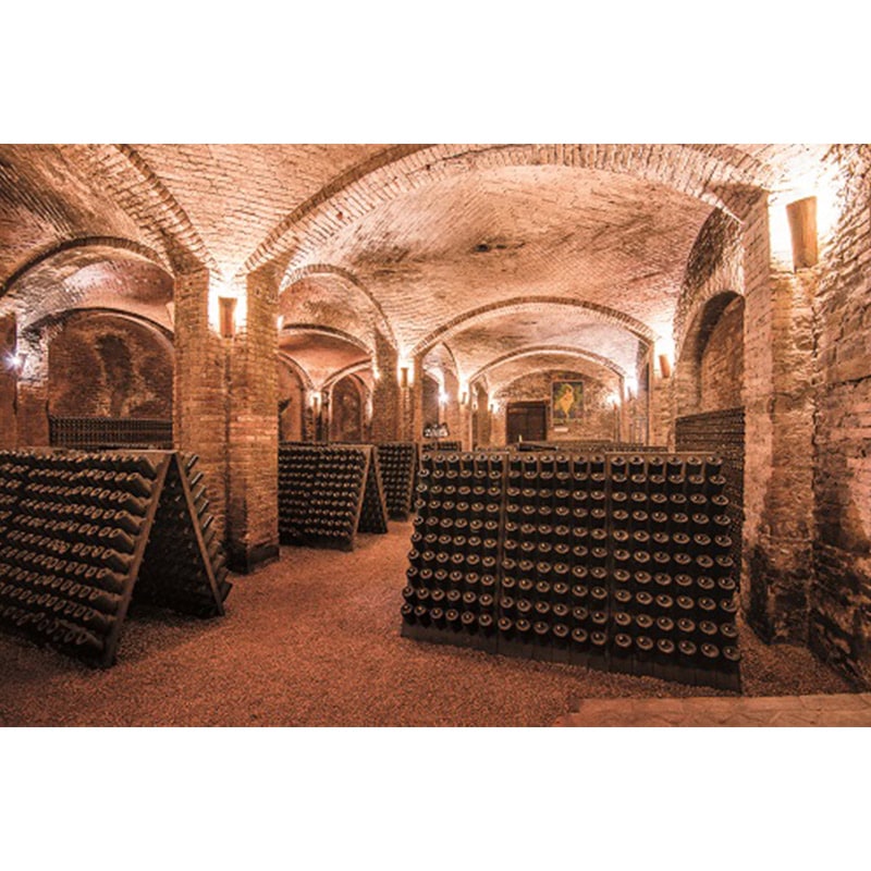 世界遺産の地下セラーの中で、瓶内で澱と共に約42ヶ月の熟成を経て造られるスプマンテ。