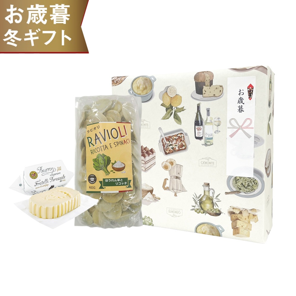 イタリアの老舗乳製品メーカーであるブラッツァーレ社が一切の妥協を許さずに「最高のバター」を目指して製造した発酵バターと、ナポリのピッツァ職人から絶大な信頼を誇る、カプート社の3種類の小麦粉を使用した冷凍のラビオリをセットにしました。心温まる味わいは、美味しいものが好きな方への贈り物にぴったり。オリジナルの包装紙でラッピングしてお届けします。